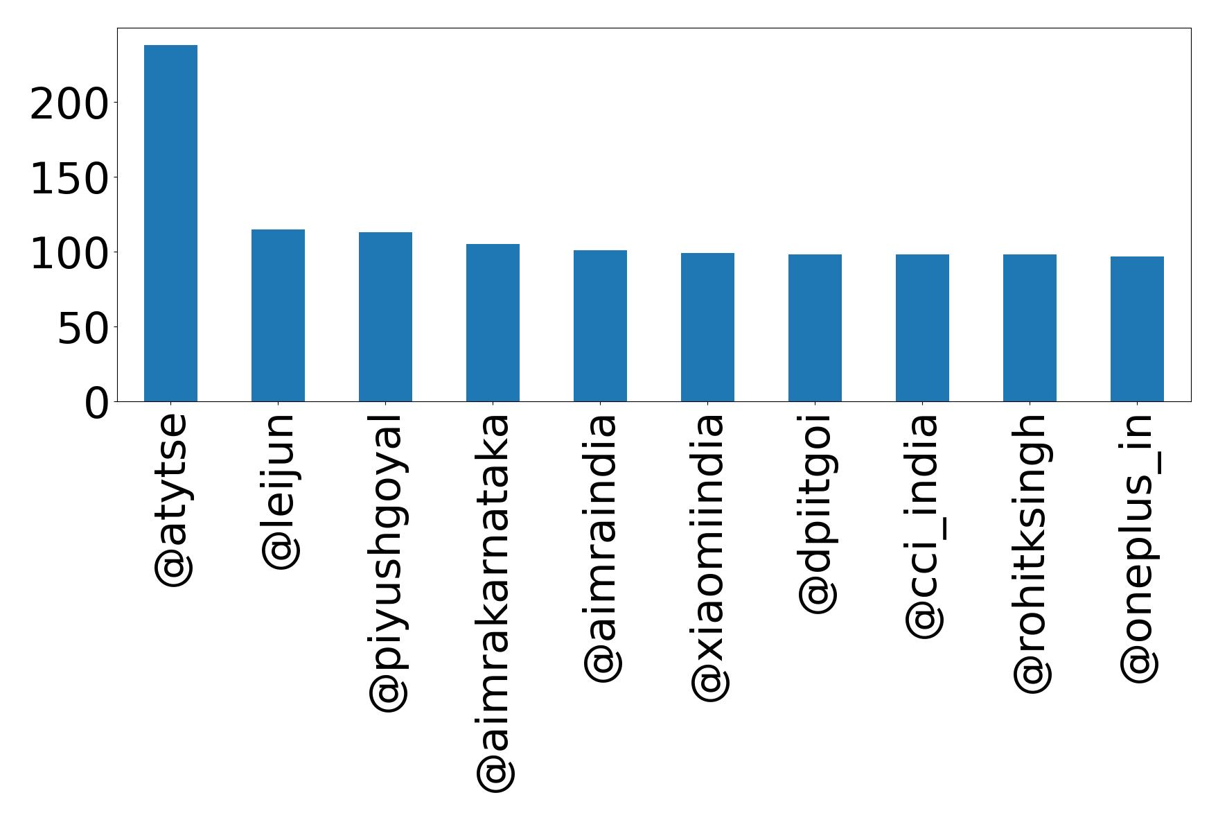 | 1637396320939044864 | @AimraIndia @AimraKarnataka @PiyushGoyal @DPIITGoI @CCI_India @rohitksingh @OnePlus_IN @realmeIndia @narendramodi @skyli_realme @leijun @MichaelGuo1 @atytse @PeteLau @Samsung @SamsungIndia @IndiaPOCO @POCOGlobal Am glad to be working for the improvement of trade, and eliminating e-commerce exploitation , thank our @PiyushGoyal sir for considering our manifesto at occasion | 2 |