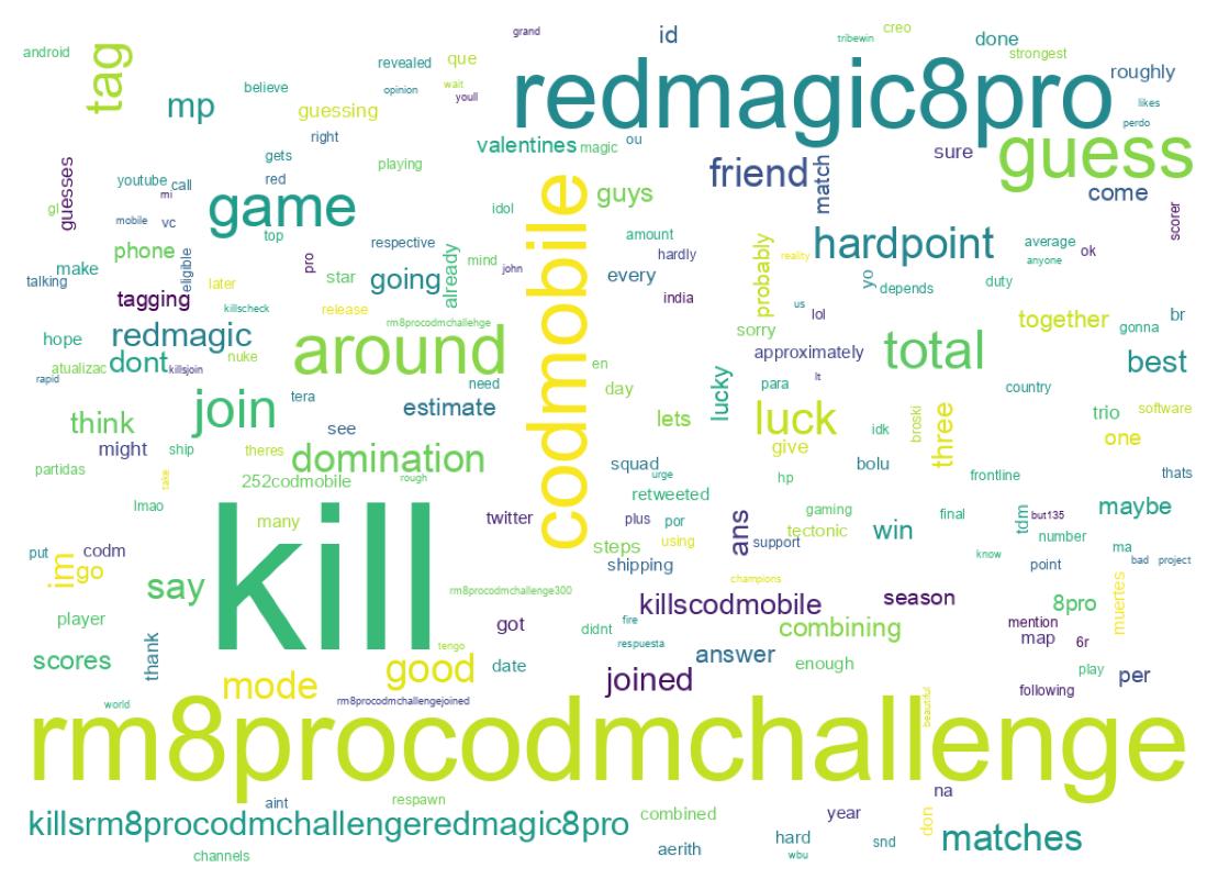 | 1626074787218079744 | @redmagicgaming @BoLuCODM @Axrith @_Tectonic_ Maybe around 289 kills in 3 matches ๐๐ป #REDMAGIC8Pro #CODMobile Guys go on with your guesses... @itsRoshniJ @Ujjwal_021 | 1 |