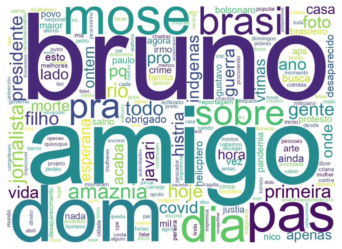 | 1536339423226236928 | Com lágrimas nos olhos, eu ainda imaginava um milagre: eles vivos na floresta, fugitivos de um sequestro. Queriam salvar a Amazônia, mas foram mortos ñ por um pescador apenas, mas pelo crime organizado que este governo permite e apoia. Que haja justiça para nosso amigo e p/ Bruno | 33 |