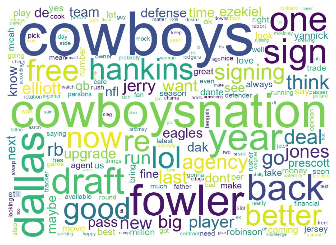 | 1638270302567256077 | @collins1869 @calvinwatkins @dmn_cowboys These signings are just to cover ourselves instead of reaching. Dallas will be looking at a TE, OG, RB | 0 |