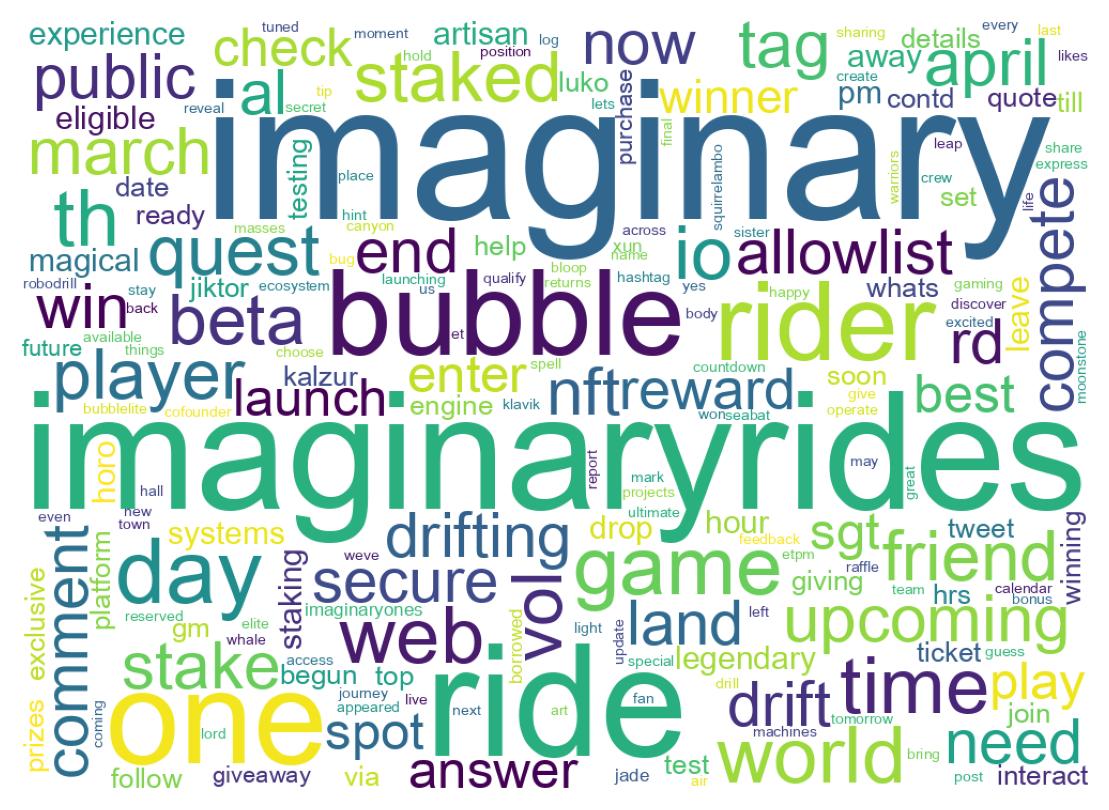| 1640547699551514624 | π’ #ImaginaryRides Update Due to overwhelming requests from the community, weβve decided to extend the deadline to buy and stake your Imaginary Ones NFTs. More details soon. As a thank you, we're giving away 3 Imaginary Rides AL! β’ Like + RT β’ Tag 3 friends 24hrs https://t.co/vIsjDct3dn | 20 |