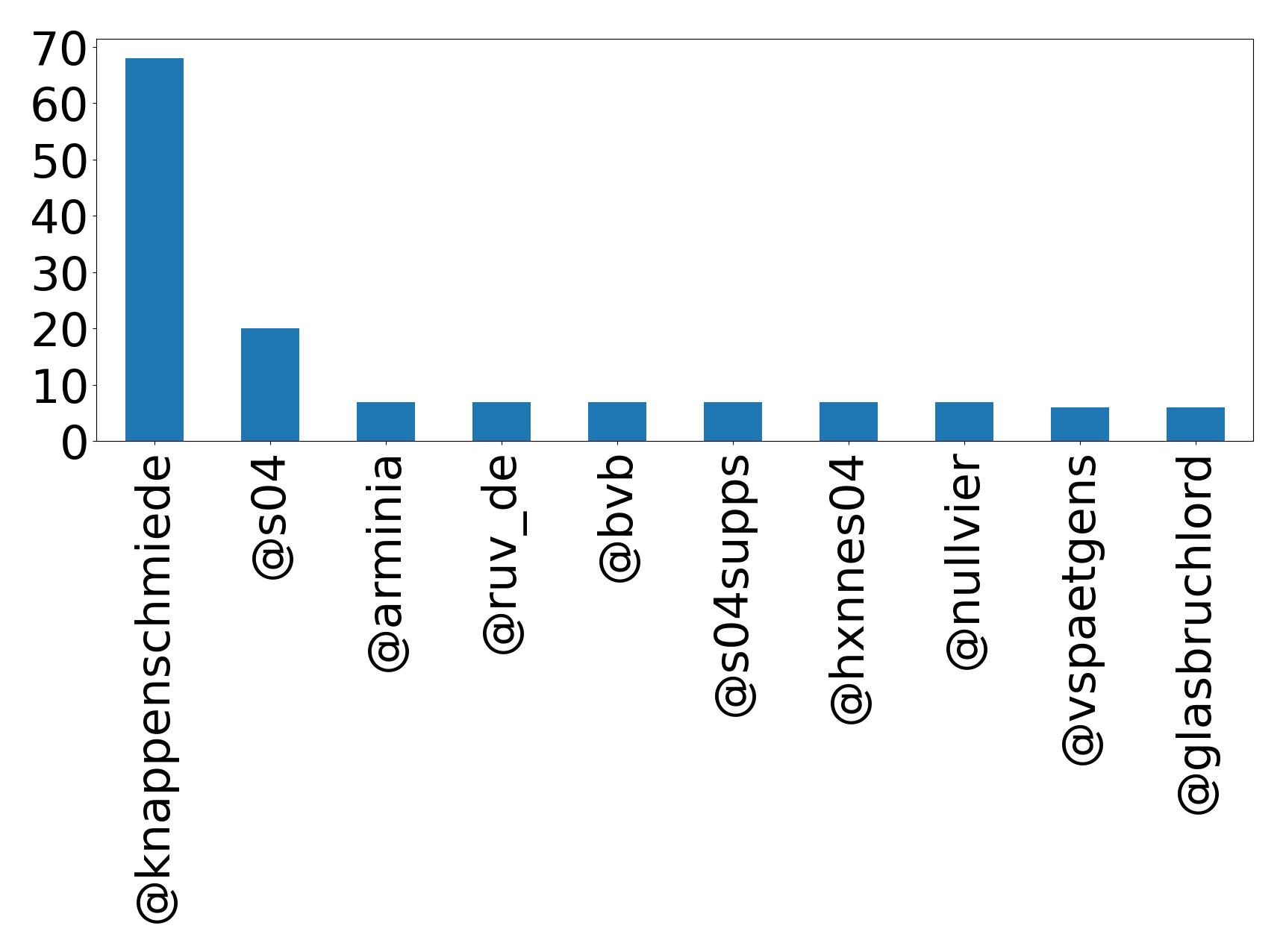 | s04 | FC Schalke 04 | Offizieller Twitter-Account des FC Schalke 04. | 🇺🇸USA: @s04_us | English: @s04_en | 日本語: @s04_jp | Spanish: @s04_es | 781,318 |