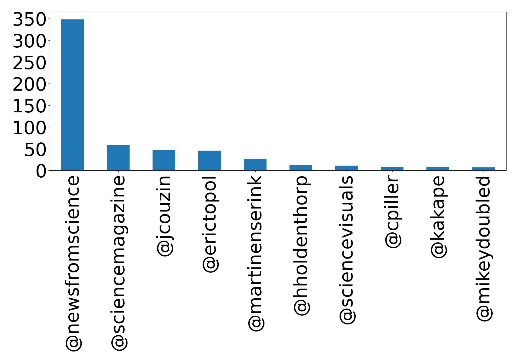 | ScienceMagazine | Science Magazine | The world's leading outlet for cutting-edge research in all areas of science. Follow @NewsfromScience for stories from our news team. | 3,404,147 |